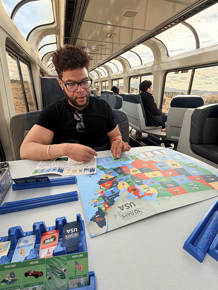 10 DAYS in the USA proved to be a most interesting experience while playing the game with passengers on an Amtrak train. As a matter of fact, The Toy Man even got beat by the same person in 3 consecutive games!