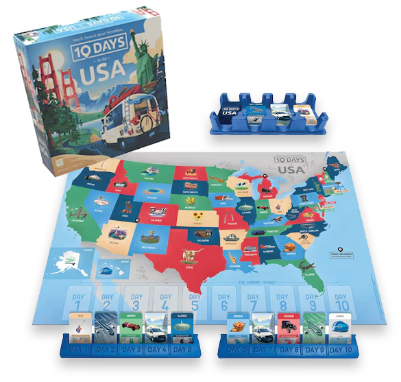 Without question, 10 DAYS in the USA keep all players fully engaged while they simultaneously learn and have fun! You can rest assured that although the game looks easy, it requires a well-planned strategy to ensure you win!