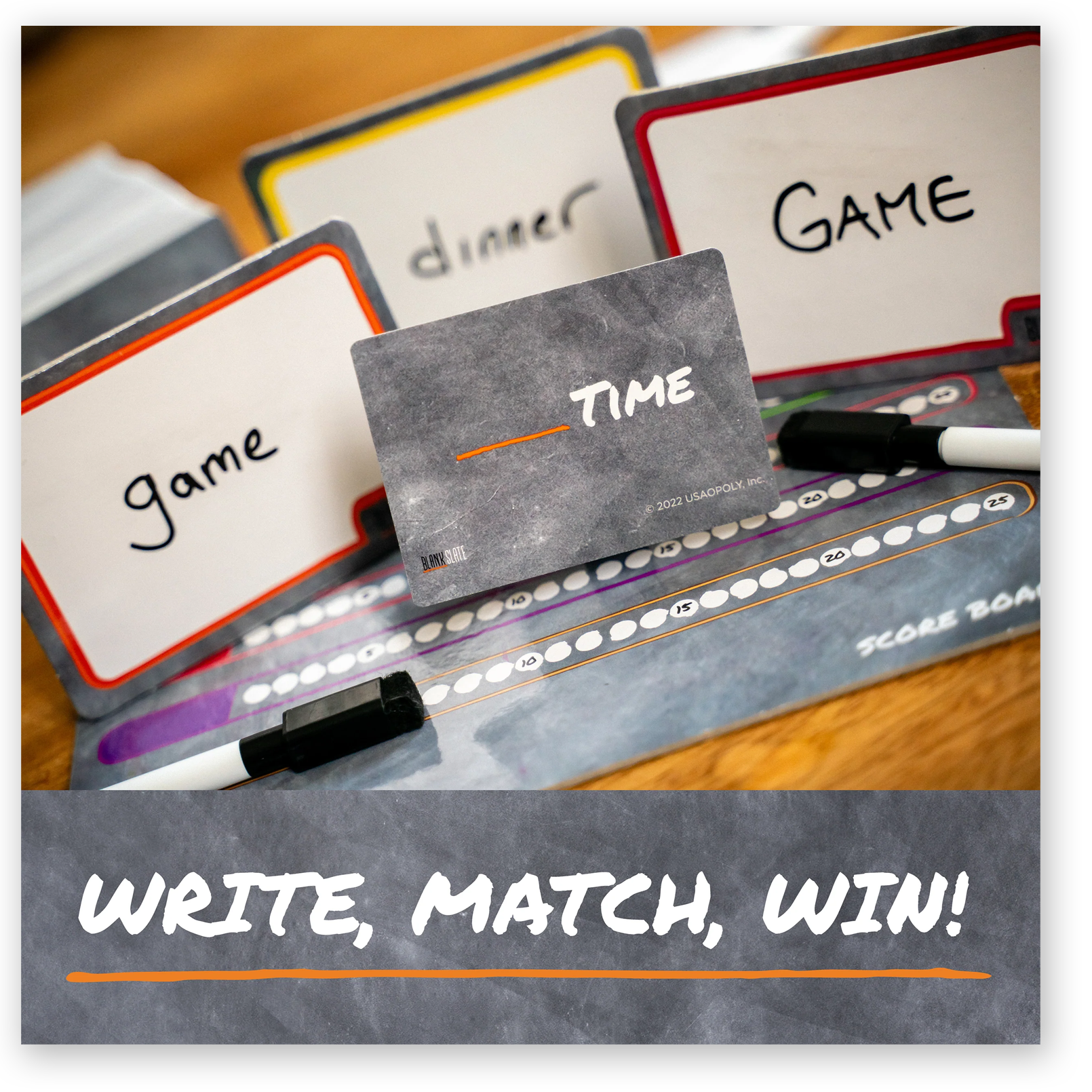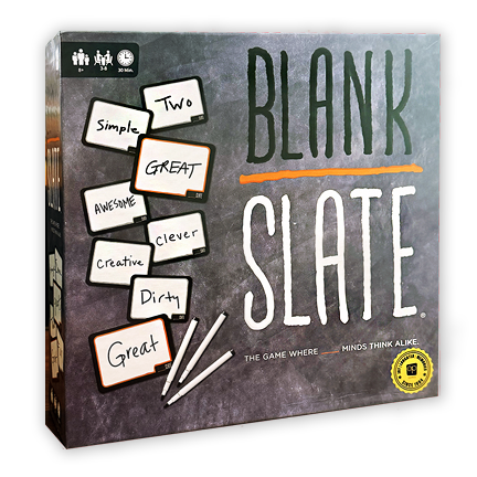 Blank Slate is one seriously addictive game i can assure you! In each round you pick one of the 250+ word cue cards (which have 500+ total cues) and reveal it. Each player then writes the word they think best completes the phrase on the card, trying to match exactly one other player's word without giving a single hint.