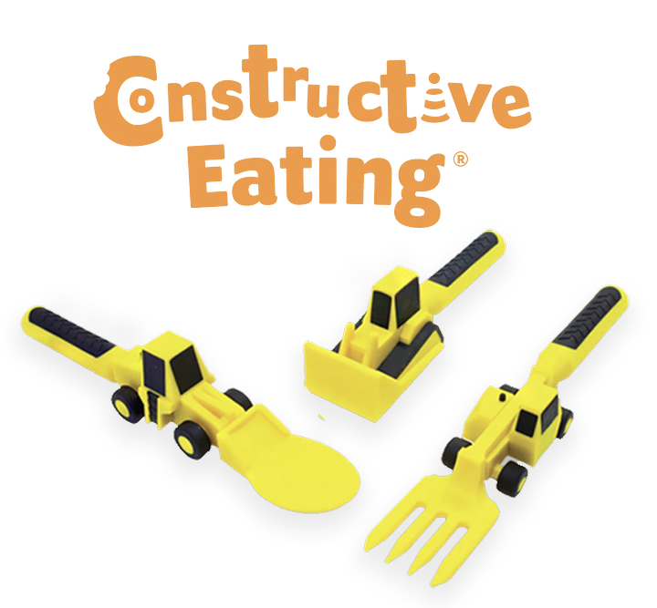 Constructive Eating's bulldozer pusher, forklift fork, and front loader spoon are designed with function and play value in mind. Textured, easy-grip handles and detailing allow little hands to hold on tight. Even the youngest child will animate these construction machines with their true-to-life color, scale, and shape.