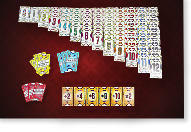 As the dealer gives cards out to each player with each round, you can possibly get a Modifier Card or a Special Action Card. A Modifier Card doesn't count as a unique number. The Special Action Cards can give you a Second Chance or even Freeze you or your opponents!