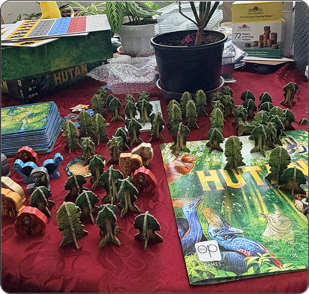 Hutan presented a unique situation for our consumer hands-on evaluation. Unlike most games, it has several component sheets that you must carefully punch out.
