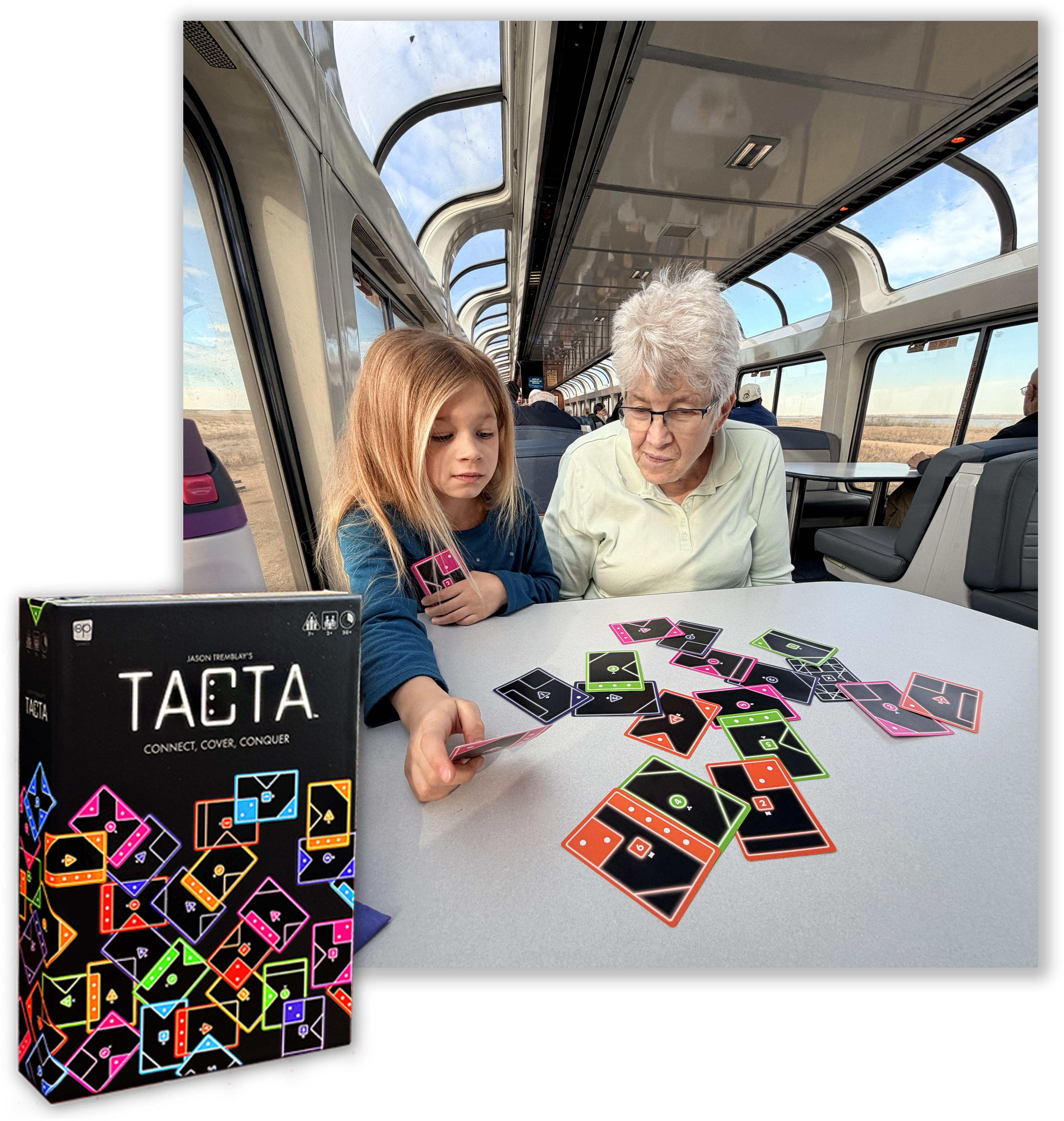 "If you enjoy dominoes, you will be hooked on TACTA™ in a heartbeat! As each card is placed, the options for the next player change; 100% unpredictable!