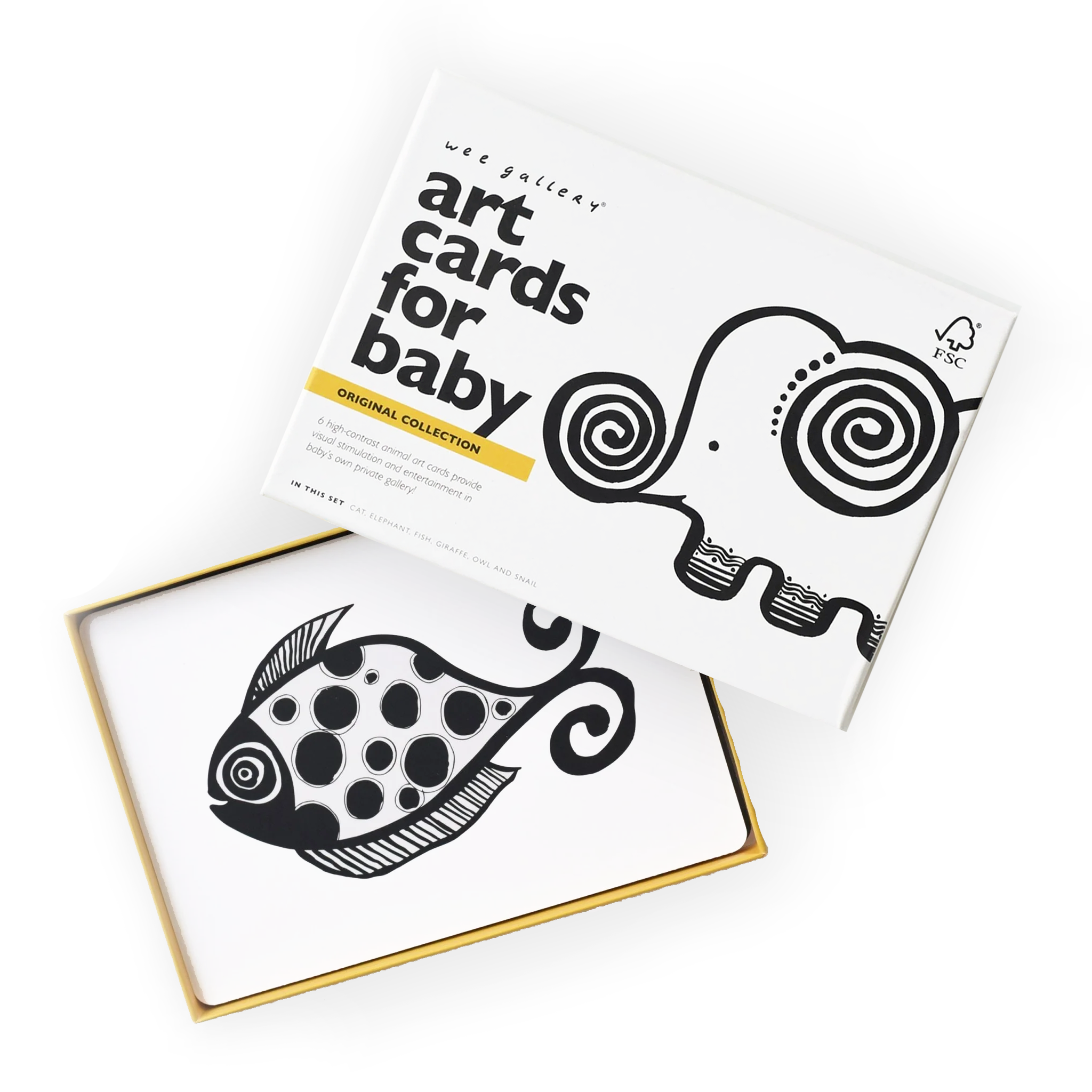 Wee Gallery flash cards come from hand-painted originals that take advantage of the visual strengths of your baby. Whimsical animals made up of black-and-white repeating shapes entertain and engage your little one, transforming playtime into a virtually artistic experience.