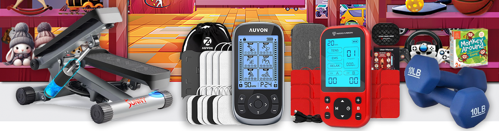 Health & fitness focused products featured here span Wearable Tech, Smart Home Gyms, Supplements, Fitness Gear (Kettlebells, Bands, Mats), Recovery Tools (Massage Guns, Hot/Cold Therapy), and Digital Apps/Subscriptions, all aimed at improving body composition, strength, endurance, sleep, and overall wellness through tracking, training, nutrition, and recovery.